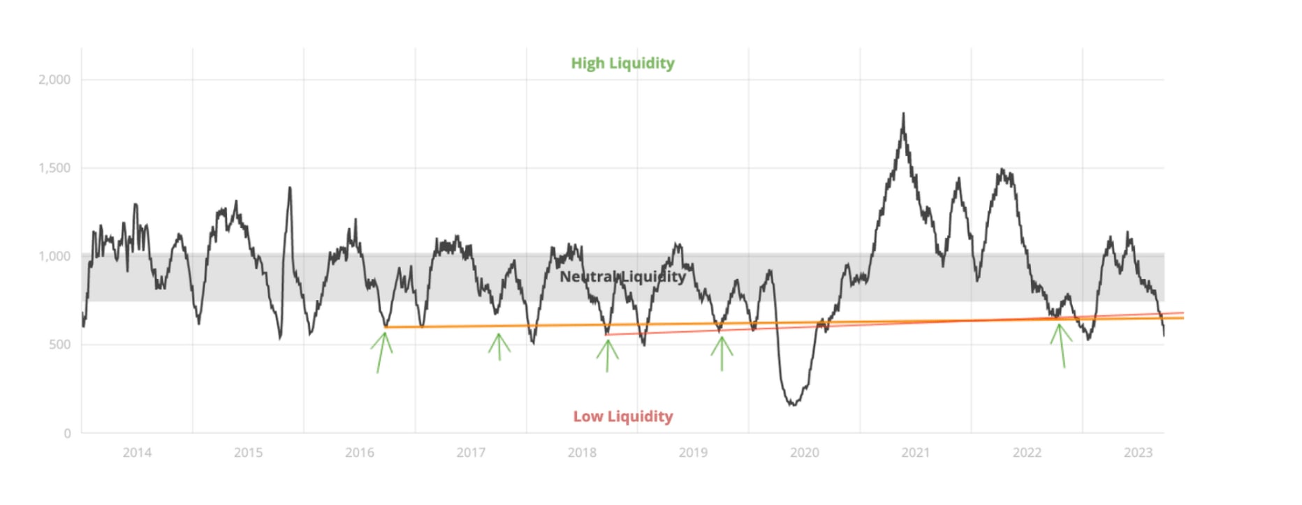 The measure of liquidity, which tracks contract activity within a 30-day rolling window, currently stands at 549 units. This marks a recent low point as we approach the end of September. Historically, this period often marks the point when the market reaches its bottom before rebounding with the onset of the Fall season. We are currently monitoring for signs of this bottoming process to materialize. During this descent into the lower range, it's common to observe heightened levels of fear and market fatigue. It is under these conditions that sellers might become more inclined to entertain lower offers from buyers.